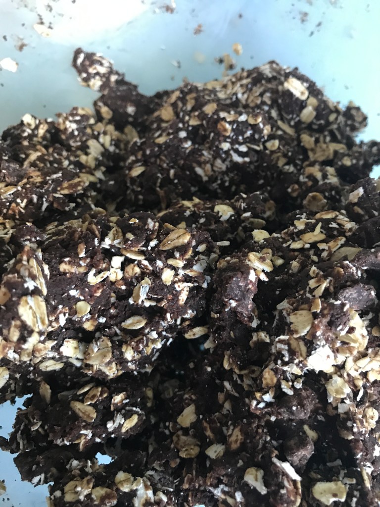 - add chocolate and oats and combine